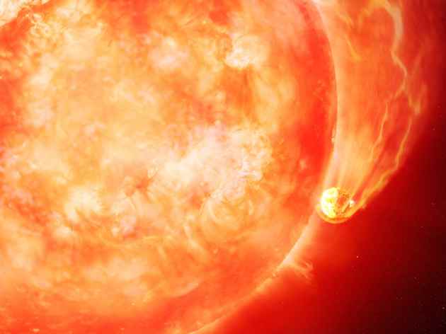 当一颗类太阳恒星的燃料快要耗尽时,它就会变成一颗红巨星,大到足以吞噬任何近地行星。当恒星耗尽其核心的氢燃料时,聚变反应就会向外扩散以寻找更多燃料,恒星外层继而发生膨胀。这意味着太阳最终将包裹住地球和其他岩石行星,尽管这在未来50亿年后才会发生。